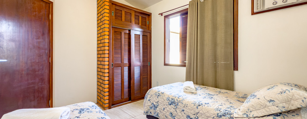 Dormitorio de Soltero: Dos camarotes (beliches), aire acondicionado y ventilador de techo.
