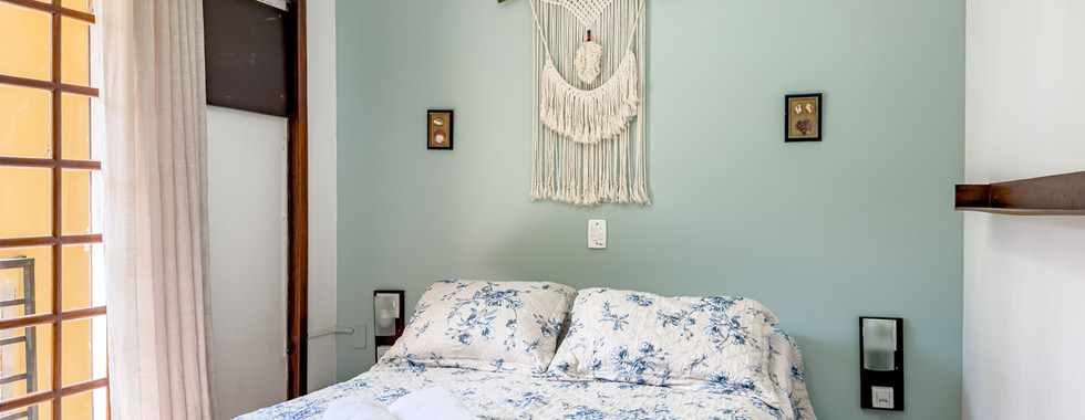 Dormitorio Matrimonial: Cama de casal, Aire Acondicionado split, ventilador de techo y caja de seguridad.