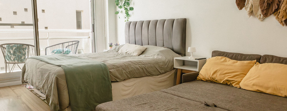 Dormitorio/Sala de Estar: Equipado con una confortable cama Queen size y un práctico sofá cama, ideal para descansar.