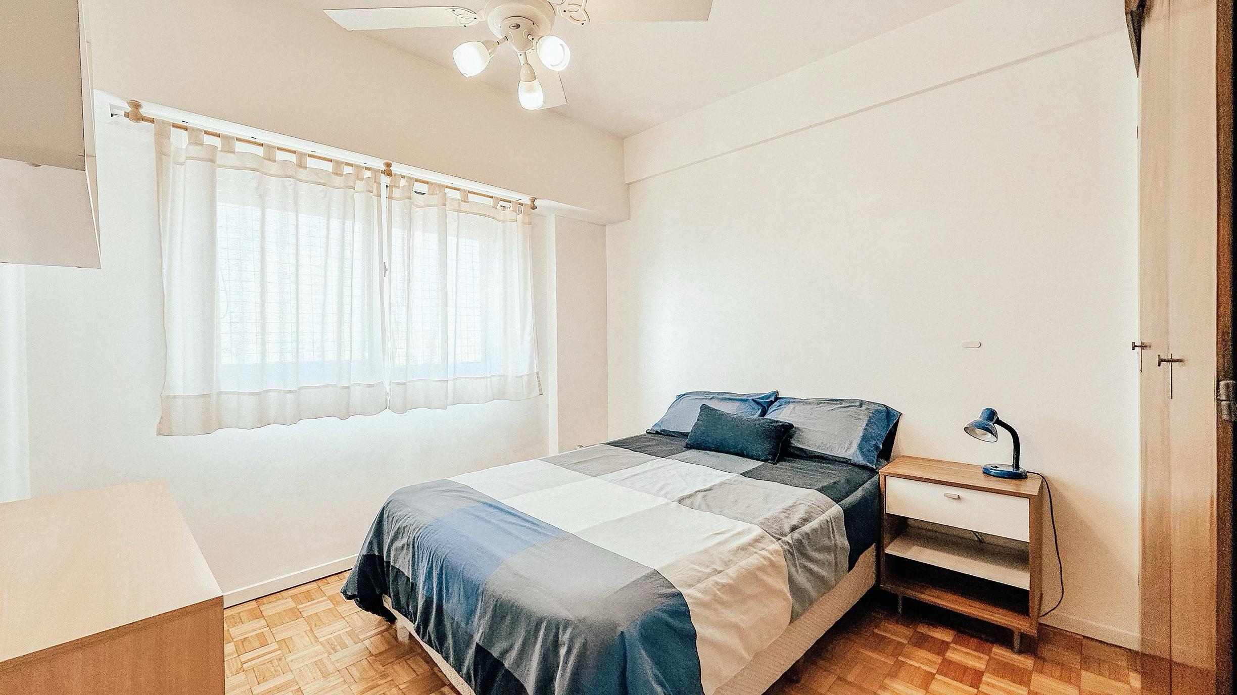 Segundo dormitorio: Equipado con 1 cama individual, mesa y silla para estudio, ideal para huéspedes adicionales o para trabajar.