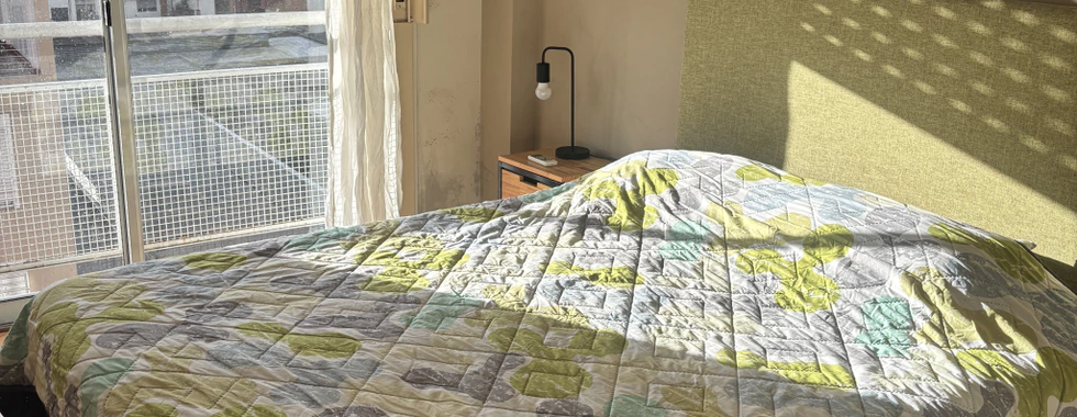 Dormitorio: Confortable cama matrimonial, gran placard de guardado, aire acondicionado y estufa.