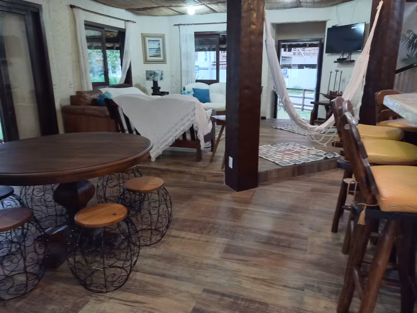 Reúna a la familia para vivir días de pura diversión y descanso en esta elegante casa de alquiler temporario, ubicada a solo 200 metros de la Praia de Palmas, Gobernador Celso Ramos - Santa Catarina.