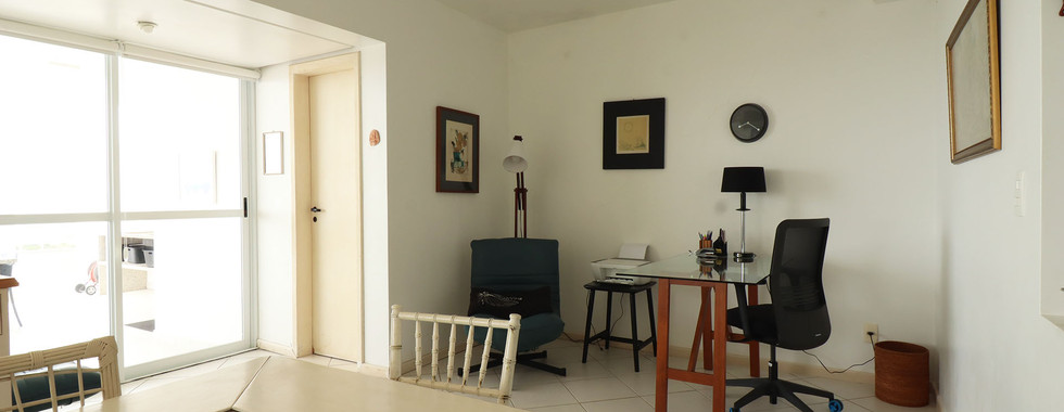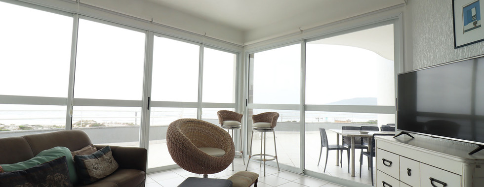 Sala de Estar: Un espacio amplio y luminoso con aire acondicionado, un home office y una espléndida vista al mar de Ingleses Norte.